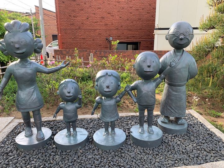 美術館により近い西口に出ます。階段をあがると、サザエさん一家の銅像が!