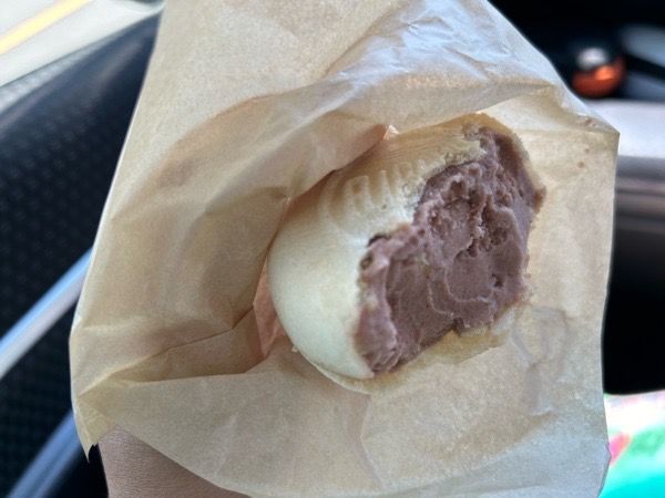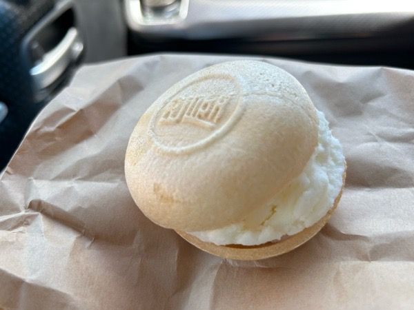 色んな種類があって悩んでしまいましたが、私はシンプルにミルクを選びました。 作り立てを紙袋に入れてくれるので、溶けないうちにいただきます! パリパリもなかにあっさりとした甘味のミルクアイスがいいバランス◎