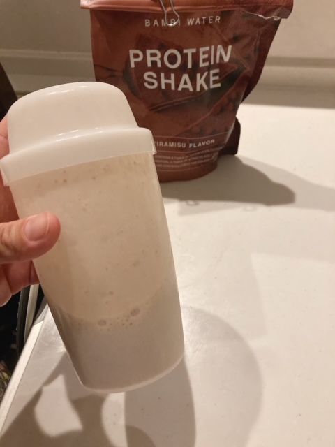 バンビウォーターのプロテインシェイクというブランドの【ティラミス味】♪美味しいです!