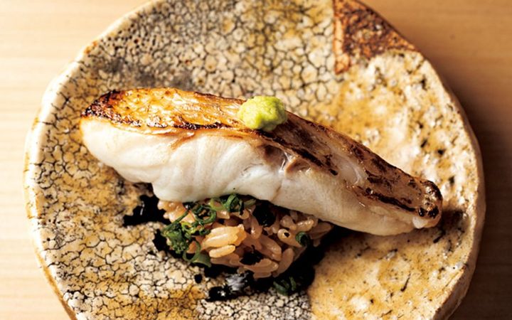 のどぐろは皮目は香ばしく焼いて酢飯とともに。