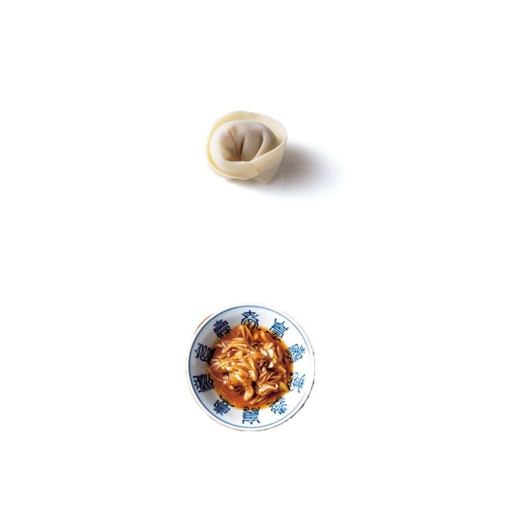 ④鍋に湯を沸かしてごま油を加え、③を入れる。再び沸騰してから3分ほど茹でて、お湯を切って器に盛り、ざく切りにしたパクチーとたれを添える。