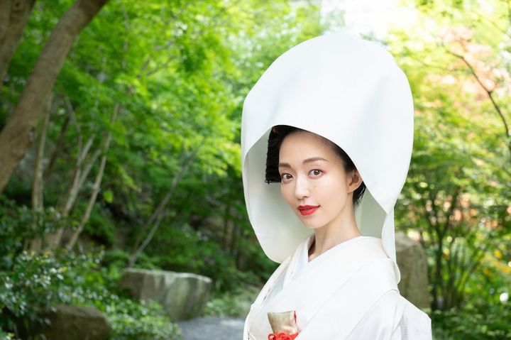 台湾から帰国後、「これまで和装のウェディングのお仕事もたくさんしてきたので、台湾式を撮影したのに自分の和装のウェディングフォトがないのは寂しいなと思って」と和装への想いが強くなったと語る松島さん。「この際、和洋中をコンプリートしよう!」となり、急遽4月に40年前に松島さんのご両親が結婚式を行なった都内のホテルで、白無垢と色打掛を着て撮影することに。