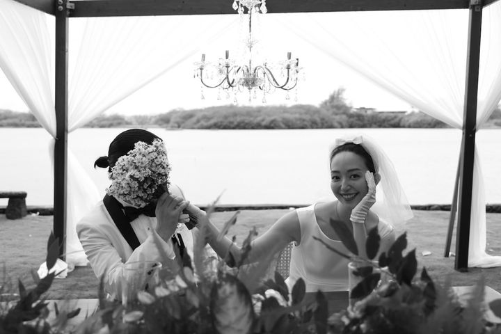 「夫の母が台湾出身なので、3月中旬に彼の祖父のお墓参りで台湾に行く予定にしていたんです。台湾に住んでいる彼の従兄弟が伝統的な衣装を着てフォトウエディングをしていたのを見てとても素敵だったので、『せっかく台湾に行くから、このタイミングで僕たちも撮らない?』と夫が提案をしてくれました。ハワイ挙式をする2ヶ月前のことでした」。
