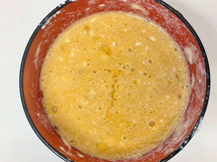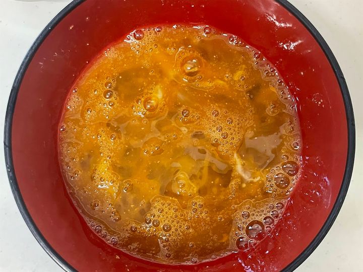 3. 2をザルで濾して、1の卵とよく混ぜ合わせます。