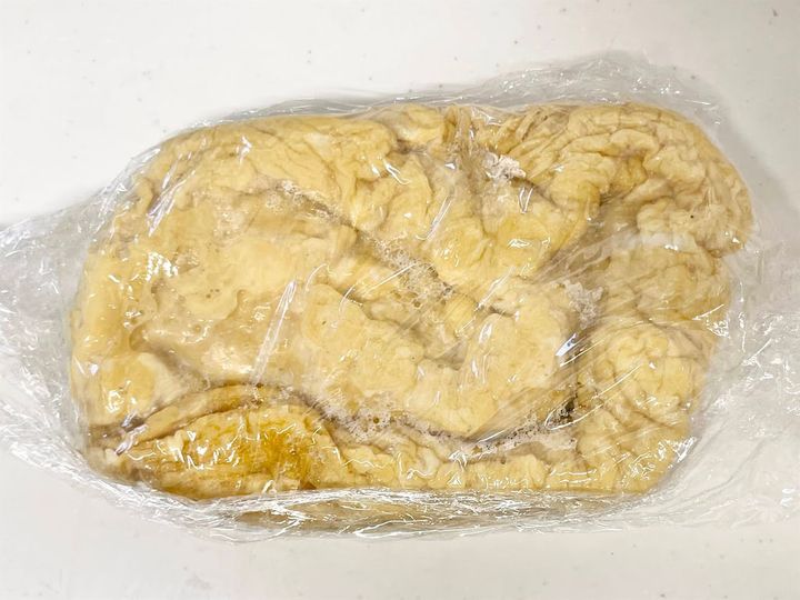 2. 豆腐の水気をキッチンペーパーで拭き取ります。