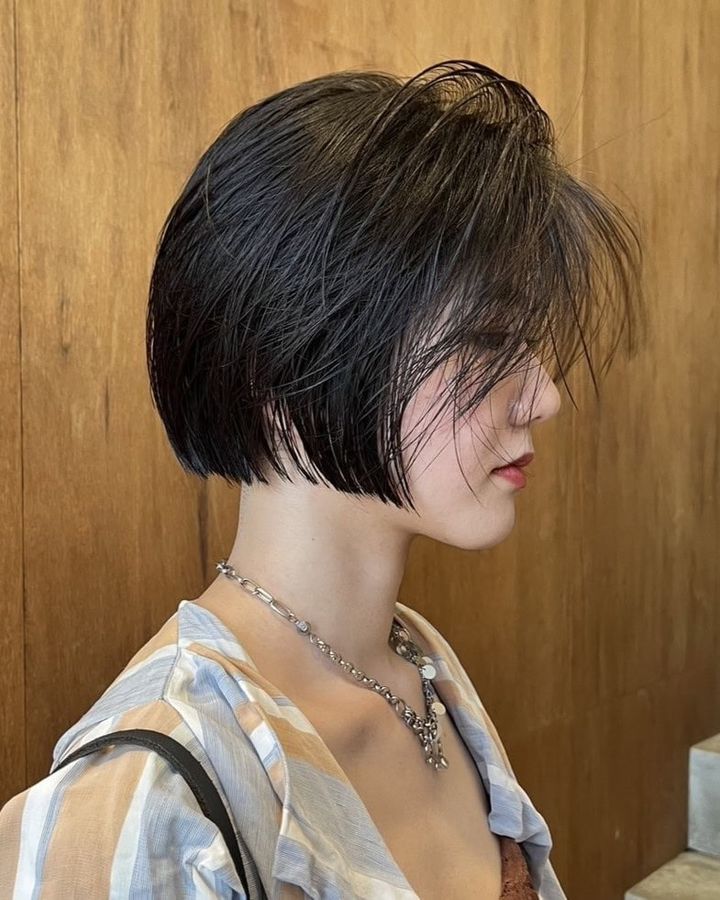 カジュアル派の30代にオススメの今ドキヘアをご紹介。顔まわりに動きを加えたミニボブは、重めボブに飽きた人や、首を細く長く見せたい人にイチオシ。肩にかからない長さで、毛先がハネにくくお手入れもラクチンです。