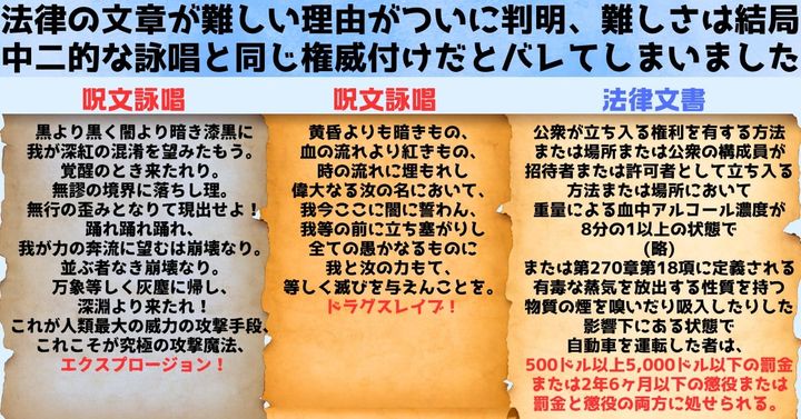 法律文章が難しい理由、結局は魔法詠唱と同じ「それっぽさ」のためとバレてしまう