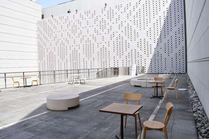 中庭には開放的なテラス席もあり、ちょっとしたピクニック気分が味わえるのもうれしいところ♪ それぞれの思い思いの場所で、おいしいサンドイッチを味わってくださいね!