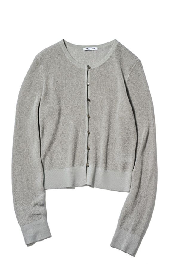 絶妙なキラキラ感とシアー素材がトレンドのショートカーディガン。羽織りでも1枚でも使えます♪