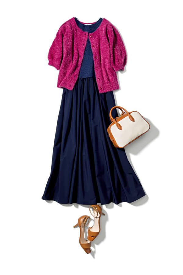 ピンクが好きだけど、童顔だから甘くなりすぎちゃう……。そんな悩みを解決してくれるのが、身につけるだけでドラマティックな濃いピンク! 合わせるトップスや小物は落ち着いた色を意識して、あくまでも上品にまとめるのがポイント。