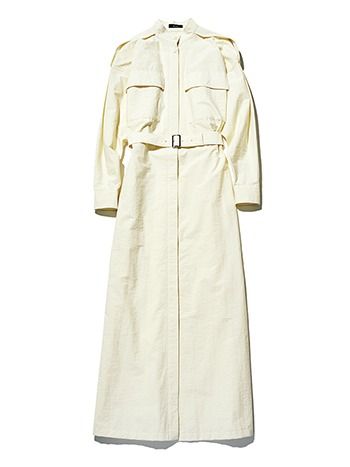 アイボリーベルトつきワンピース/アルアバイル スタンドカラーにエポーレットなど、マニッシュなデザインもメリハリづけにひと役。1枚で着るのはもちろん、ロングコートのようにも着られるから、夏から秋へ、また春からも使える着回し力の高さも魅力。