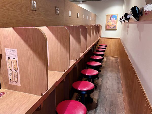 一蘭といえば、周りを気にせずにラーメンへと集中できることでお馴染み「味集中カウンター」が特徴!