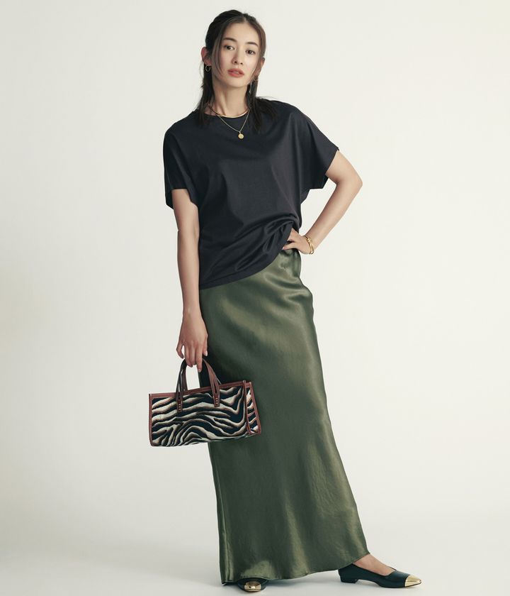 大人の華やぎを演出してくれる【サテンスカート】でTシャツコーデを秋仕様に