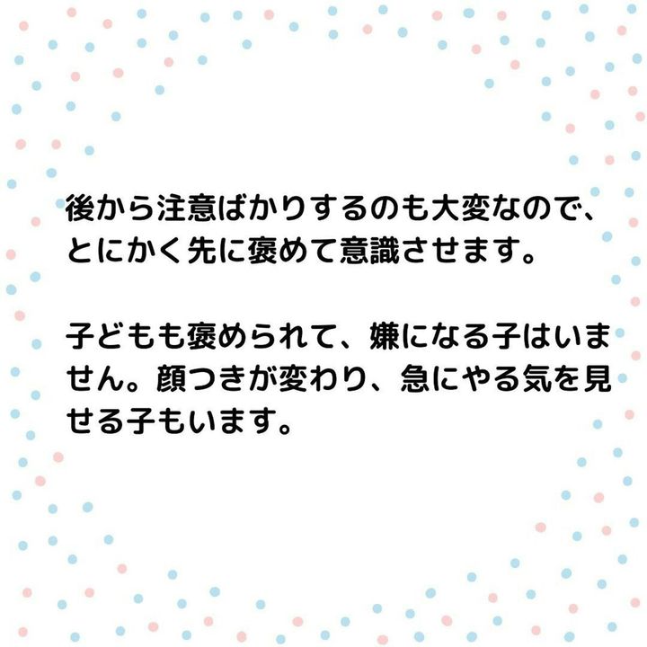 子どもがこれからすることに対して褒めるやり方は、なかなか思いつかないですよね。行為の前に褒められると、「やらなくちゃ」とやる気を高めて臨んでくれるのでしょう。