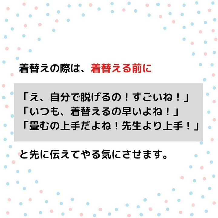 保育園ではとにかく先手必勝で先に褒めて意識させています。