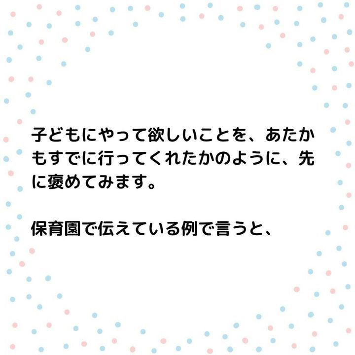 片付けをしてと言ってもしない、ご飯を食べてと言ってもしない…。育児をしているとよくあることですが、そのたびについ叱っていませんか?インスタグラムで「保育士×パパ」の目線から育児情報を発信しているゆうき@保育士パパ(@hoikushipapa)さんによると、子どもにしてほしいことをしてもらうには先に褒めることが効果的なのだそうです。実際に保育士も使っている先に褒める方法とはどのようなものなのでしょうか?