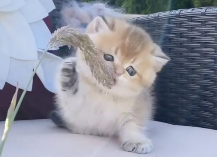 3. 可愛らしい♪ 稲穂を猫じゃらしにして遊ぶ子猫。