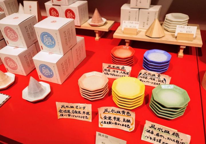 単品「願いの盛り塩」に、5色の「風水皿」(全税込363円)を合わせて、オリジナルの推し色盛り塩を飾ってもいいですね。
