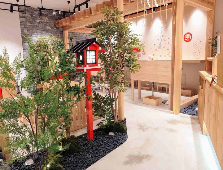 2024年8月、東京ソラマチ(R)のイーストヤード4階にオープンした「願(ねがわくば)」。日本橋の商業施設「コレド室町3」に常設店舗を構えている創業60年余の神棚専門店「神棚の里」が手がけた新業態の和カフェです。杜(もり)のように木が生い茂り、神社の境内さながらのお店に自然と足が向かいました。