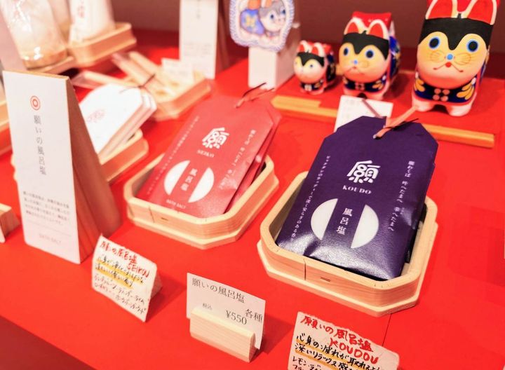 心身の疲れを取り除く「願いの風呂塩」(税込550円)、盛り塩や料理にも使えてパフェにも振りかけられている「願いの塩」(200g/税込540円)も販売されています。