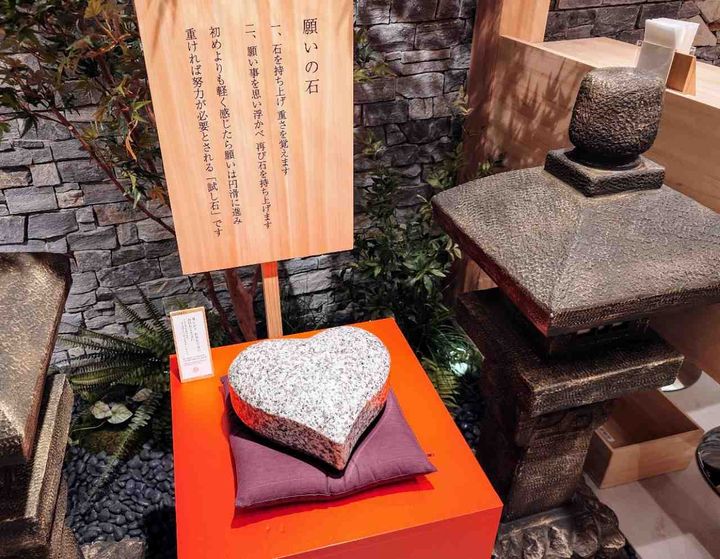 願いが叶うかどうかを試す「願いの石」。心の中で願い事をしてハートの形をした石を持って、自分が予想していたよりも軽ければ願いが叶う方へ進み、重ければ努力が必要、とのこと。