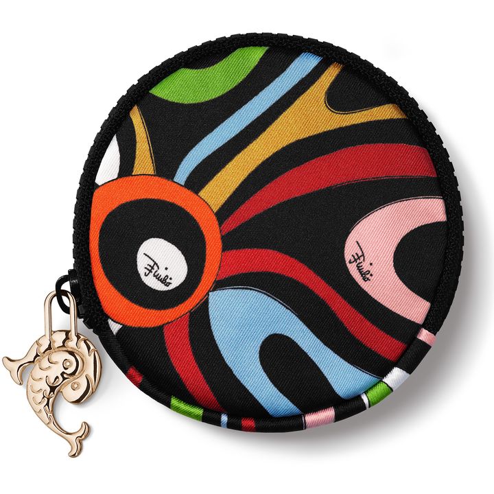 太陽の光を浴びたような黄金の輝きを演出するブロンジングパウダー<テラコッタ ブロンジング パウダー>もマルモパターンの装いに。ダークなサテントーンとピ ンクのパールを組み合わせた3つのシェードがマルモパターンを描く、特別な限定シェードで登場。<テラコッタ>のアイコンであるアンバートーンのラウンド型コンパクトは、マルモプリントをあしらったクチュールファブリックのジップポーチに収納。ポーチのジッパー部分には、プッチのロゴと共に描かれる2匹の魚をモチーフにしたシグネチャーを象った、ゴールドのチャームが輝きます。
