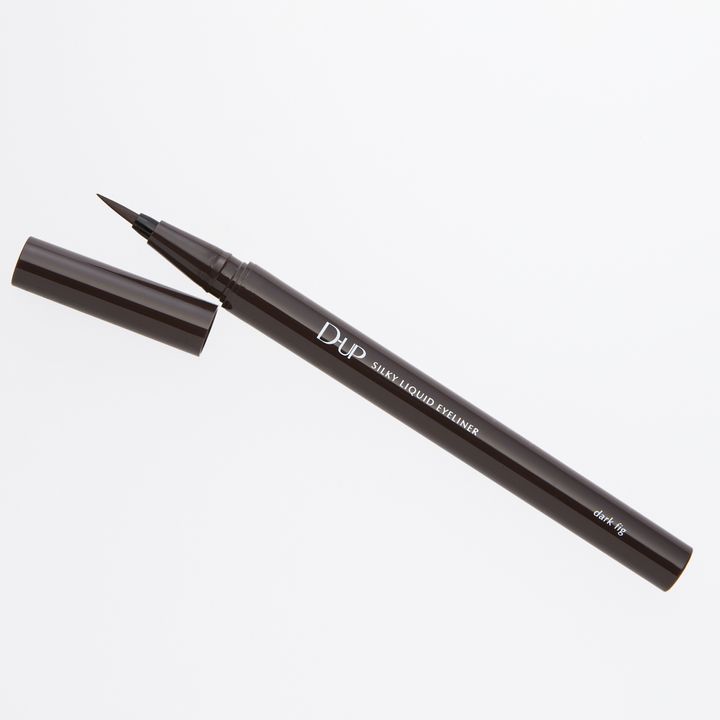 目元に馴染んでくっきりフレームを強調。こすれに強くなめらかで描きやすい。締め色だけどさりげなく甘いダークブラウン。ディーアップ シルキーリキッドアイライナーWP ダークフィグ ¥1,430(ディー・アップ)