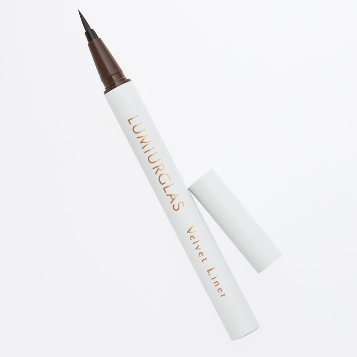 目尻までかすれずにみずみずしいラインが引ける。絶妙な筆の長さとコシでなめらかな描き心地。ルミアグラス ベルベットライナー 01. ブラウンブラック ¥1,760(カティグレイス)