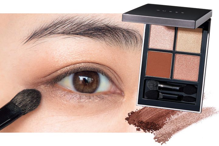 仕事に意欲的に見えつつ圧のない目ヂカラは、知的な眉毛とマスカラ、アイラインで。シャドウはナチュラルな陰影を仕込んで上品に。