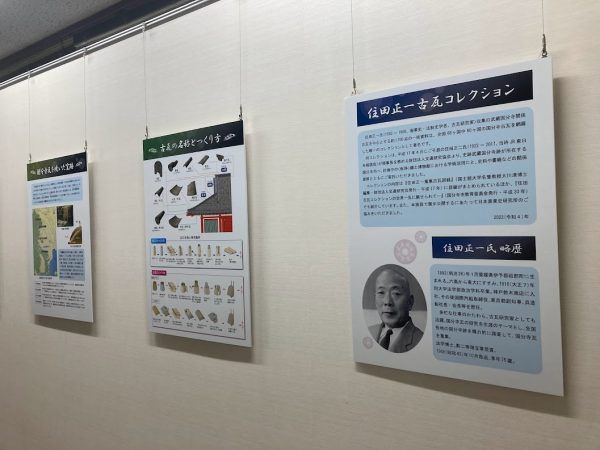 このコーナーは古瓦研究者として活躍された住田正一さんのコレクションで、全国の国分寺を周って収集された瓦が展示されています。