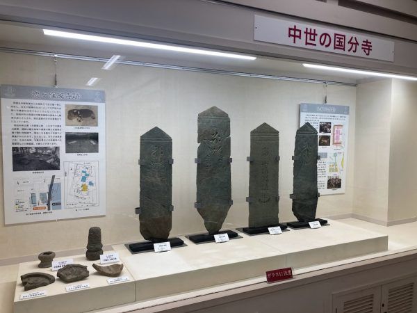 この「国分寺市文化財資料展示室」では中世の国分寺周辺についても学べるように、板碑(石製の供養塔)などの出土品とともにパネルで紹介されています。