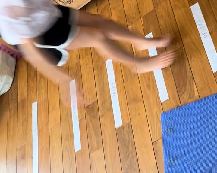 小2の娘は自分が何cm跳たか、記録を伸ばすのに必死でした!
