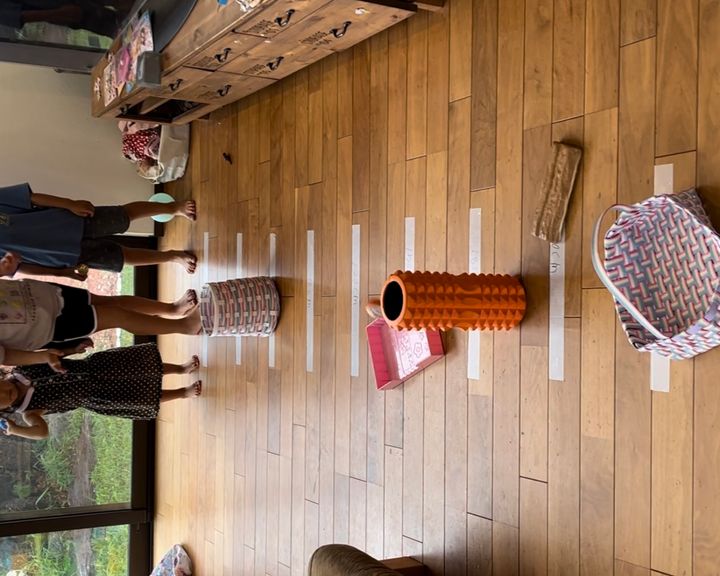 今回は、台風対策で購入した養生テープが沢山あったので床に貼って遊んでみました。