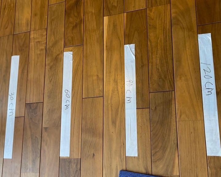 床に養生テープを貼り、30cmごとに油性ペンで書いてみました。