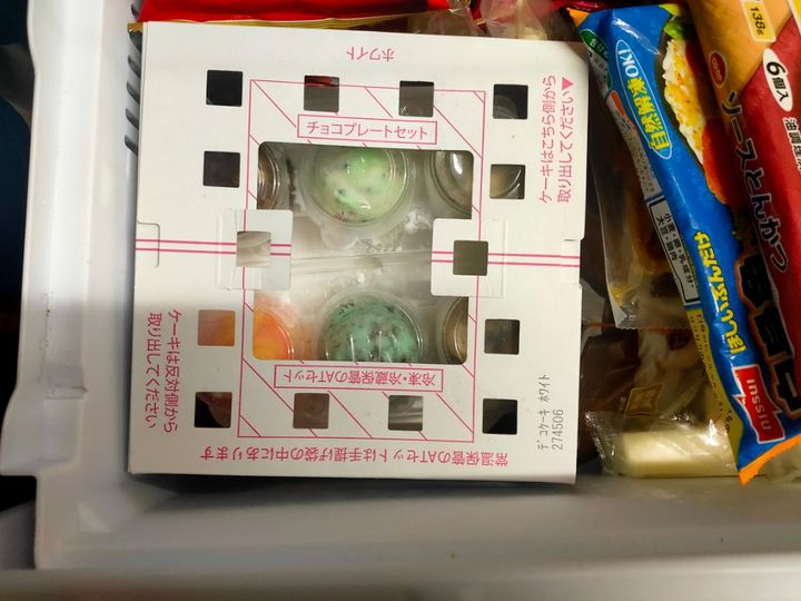 冷凍庫に入らない!となり、冷凍庫の中身を一時的に保冷バッグに移し、なんとかアイスケーキを入れました。
