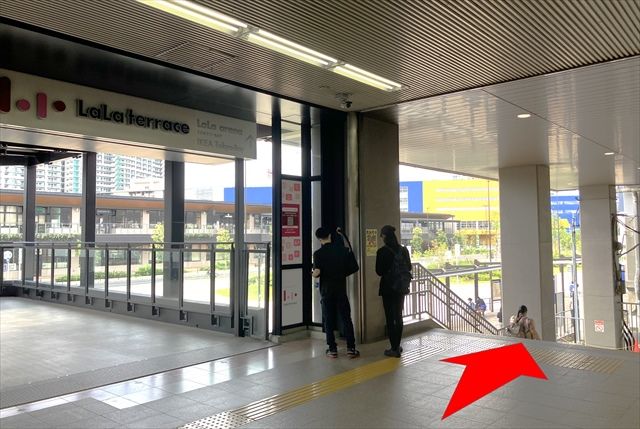 ららアリーナへは、まず改札を出て左側の「LaLa terrace(ららテラス)」の看板がある方の出口から出ます。