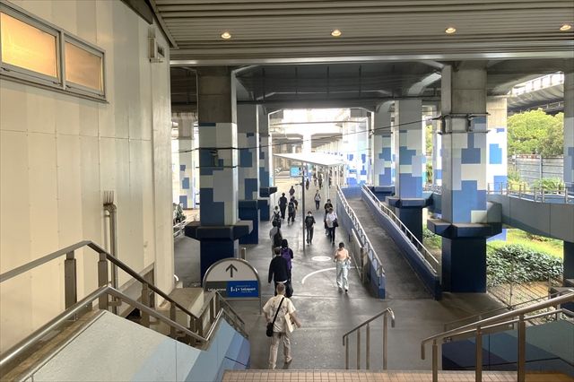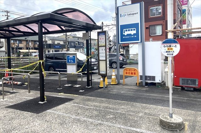 階段を降りると「ららぽーと 無料 送迎バス のりば」と書かれた標識があるので、そこからバスを利用しましょう。