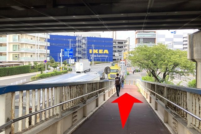 高架下をくぐって歩道橋を降りたらIKEAが見えてくるので、あとは先述のルートを辿ればららアリーナに到着できます。