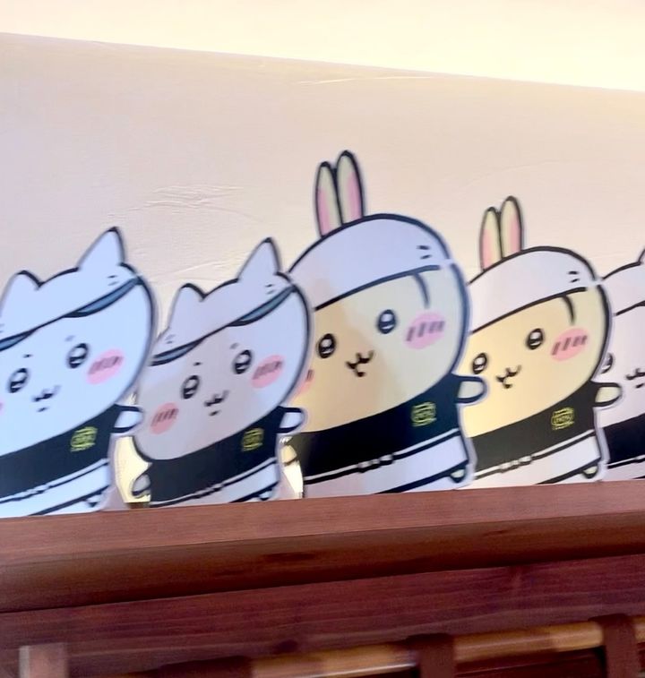 出典:MORE壁に飾られた、左からうさぎ、ちいかわ、ハチワレ