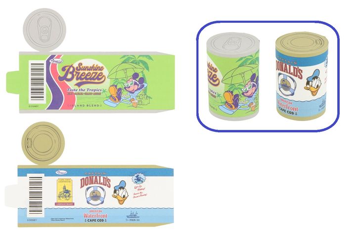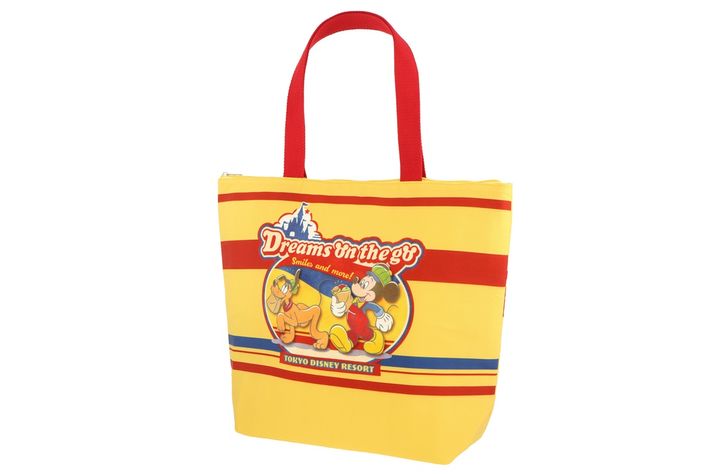 こんなお店があったら行ってみたくなりそうな、架空のグロサリーストアをモチーフにしたグッズの注目アイテム。お揃いの帽子をかぶったミッキーとプルートがお買い物を楽しむ様子がデザインされています。