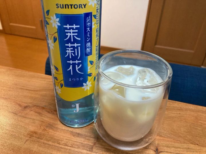 変わり種アレンジとして、ジャスミン焼酎1:豆乳3で割ってみました。一見、ん?と思うような組み合わせですが、意外にも相性良し!まろやかな豆乳とさっぱりとした茉莉花がマッチして、とても飲みやすかったです♪普段から豆乳はよく飲んでいるものの、お酒と割ってみたことはなかったので今回は新たな発見でした!