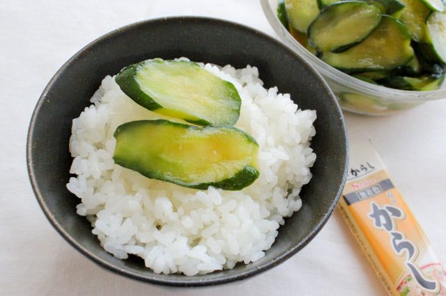 ご飯と一緒に食べてみると、きゅうりのポリポリ食感がクセになる〜♪塩揉みし、きゅうりの水分をしっかり抜いたことで、くたっとしたやわらかさながらも、歯ざわりのいい食感に仕上がっています。