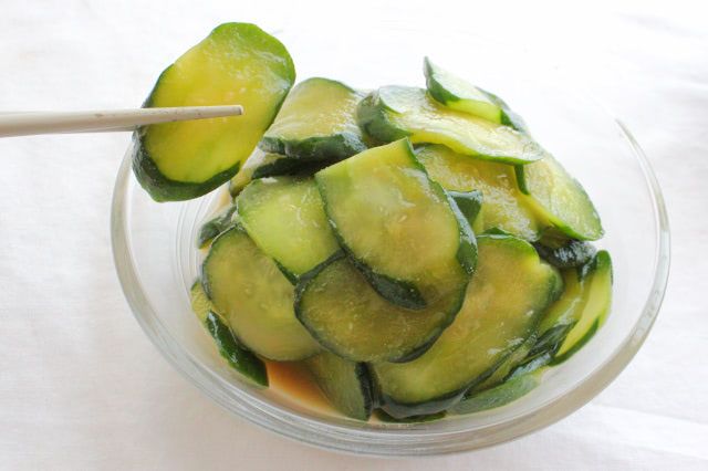 きゅうりを薄めに切ることで、短時間で漬かるそうです。