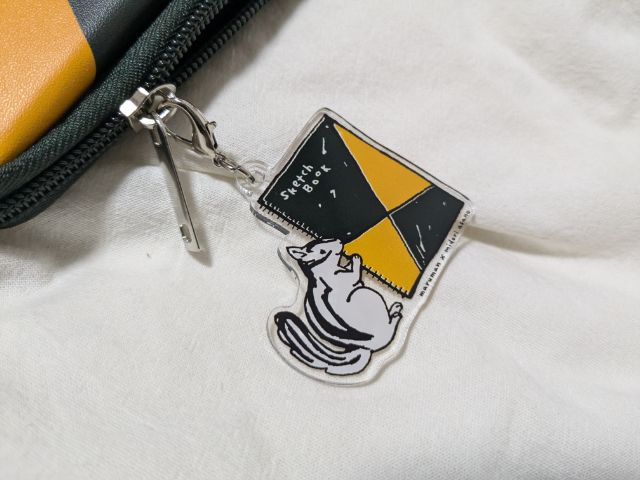 浅野みどりさんが描いたキュートなりすの、取り外せるアクリルチャームがついているのでポーチのアクセントに。