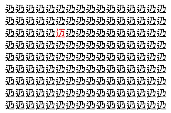 画像の中には、「辸」という漢字が縦に9行、横に16個並んでいます。 全部で144個となりますが・・・、そのうち1つは「異なる漢字」となってますよ!!