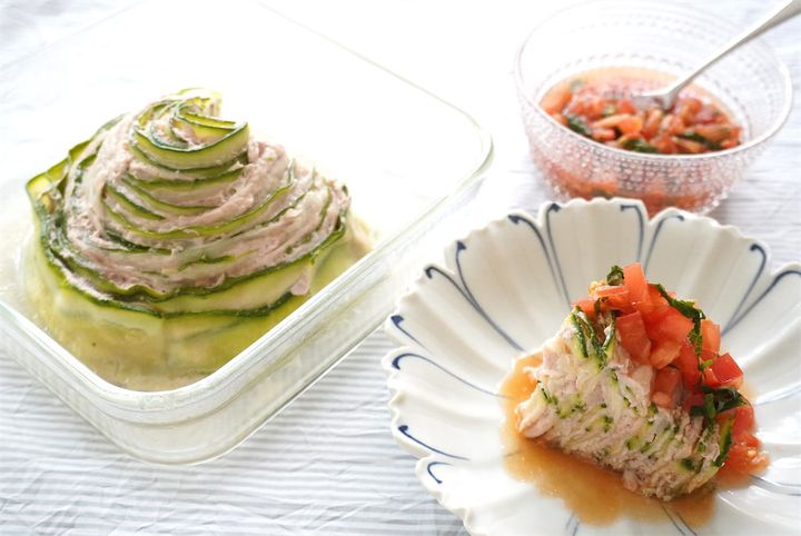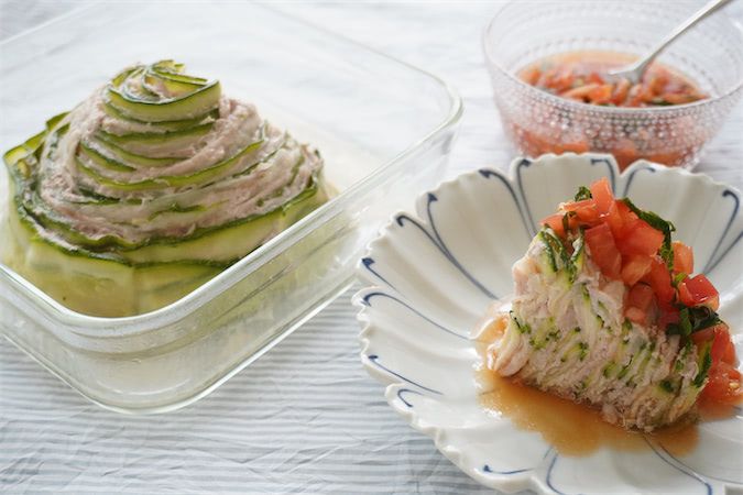 白菜と豚肉を交互に挟んで煮込む「ミルフィーユ鍋」って作ったことありますか?簡単でおいしいので、わたしは大好きなんですが、残暑厳しい今作るものじゃないですよね(汗)。でも、長野県の農家に教わったレシピが、「夏版ミルフィーユ鍋(!?)」とも言える斬新な一品だったんです。その名も「ズッキーニと豚肉のぐるぐる蒸し」!トマトソースと青じそのソースで爽やかなお味に仕上がるんだそう。しかも火は使わずレンチンのみだからお手軽♪これは作ってみなくては~。