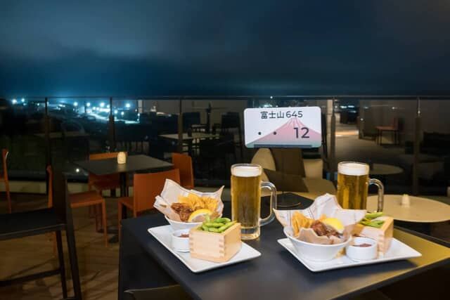 ホテル最上階の屋外テラスでは、サーキットと富士山のどちらの景色を楽しめる「ルーフトップビアガーデン」を開催中。期間は2024年9月13日(金)まで。外来利用も可能で予約も不要です。営業時間は16時から20時まで。大人3,300円、子供(6歳から12歳まで)1,650円、未就学児は無料で、雨天時はロビーフロアの「TROFEO ラウンジ」で行われます。
