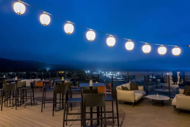 奥には富士山が見える席も用意。雲のない日は、登山者の灯りがよく見えるのだとか。普段なかなか見られない景色に出会えるかも。