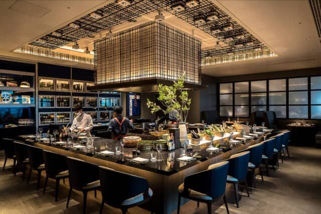 モータースポーツをイメージするホテルだけあって、「Robata OYAMA(炉端小山)」はカーレースのピットがテーマ。レース中に燃料補給やパーツ交換を行うピットワークと同じく、ゲストに食の驚きと臨場感、感動の美味しさを提供します。