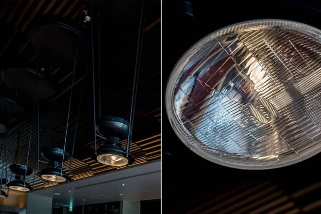 バーの照明には、自動車用のヘッドライトを製造する小糸製作所のオールドタイプのレンズが使われます。年配の方には懐かしいアイテムで、現代の自動車はクリアなレンズが主流ですが、昔はレンズカットで光の向きをコントロール。光を広く照射することはもちろん、対向車が眩しくないよう左右非対称にカットしてあります。